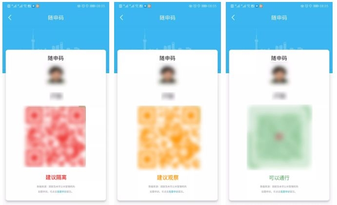 绿色:显示绿色说明是未见异常或已解除医学管理措施的人员。可以通行。