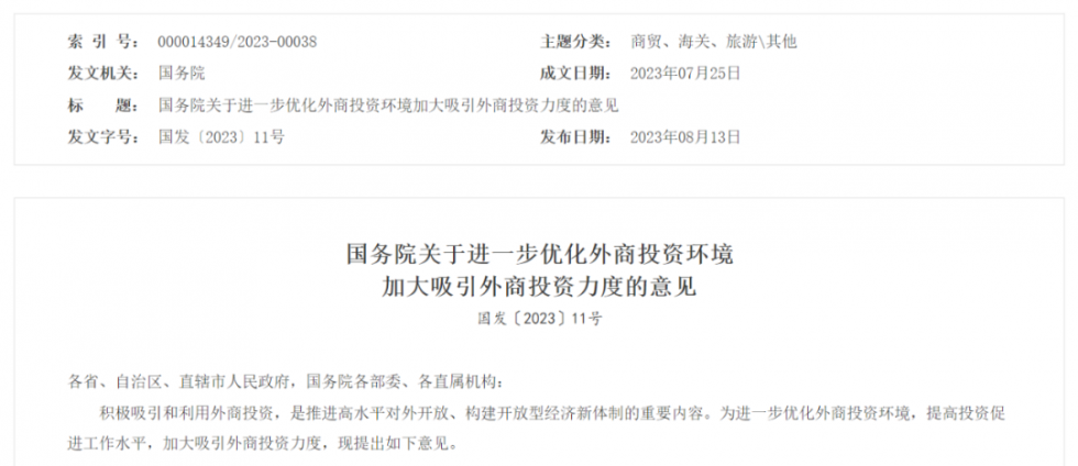中国国务院发文加大吸引外商投资力度