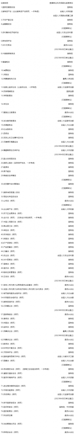 十四届全国人大常委会立法规划