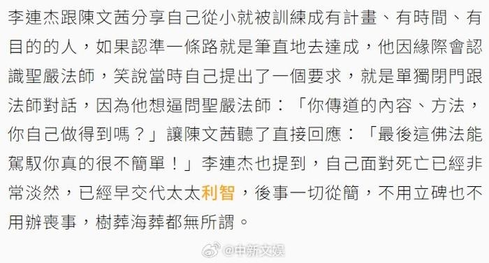李连杰已向妻子交代后事
