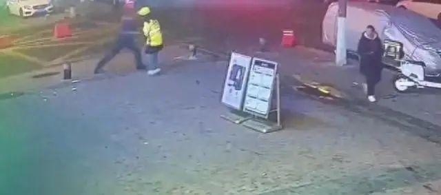 根据网传监控视频显示,12月5日晚10点07分左右,一位外卖员来到一小区门口,此时一位身着蓝色制服的保安人员也出现在视频中。