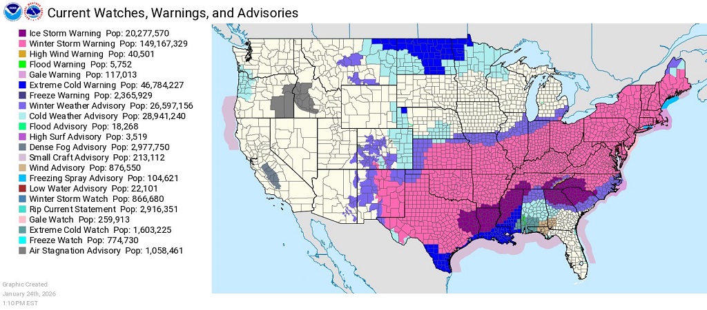 据美国国家气象局最新通报,这场冬季风暴将带来强降雪、冻雨、雨夹雪以及极端低温天气,影响范围覆盖美国中部、东部和南部。气象学家警告,此次风暴在影响范围和天气要素叠加程度上较为罕见,可能对日常生活造成持续数日的影响。